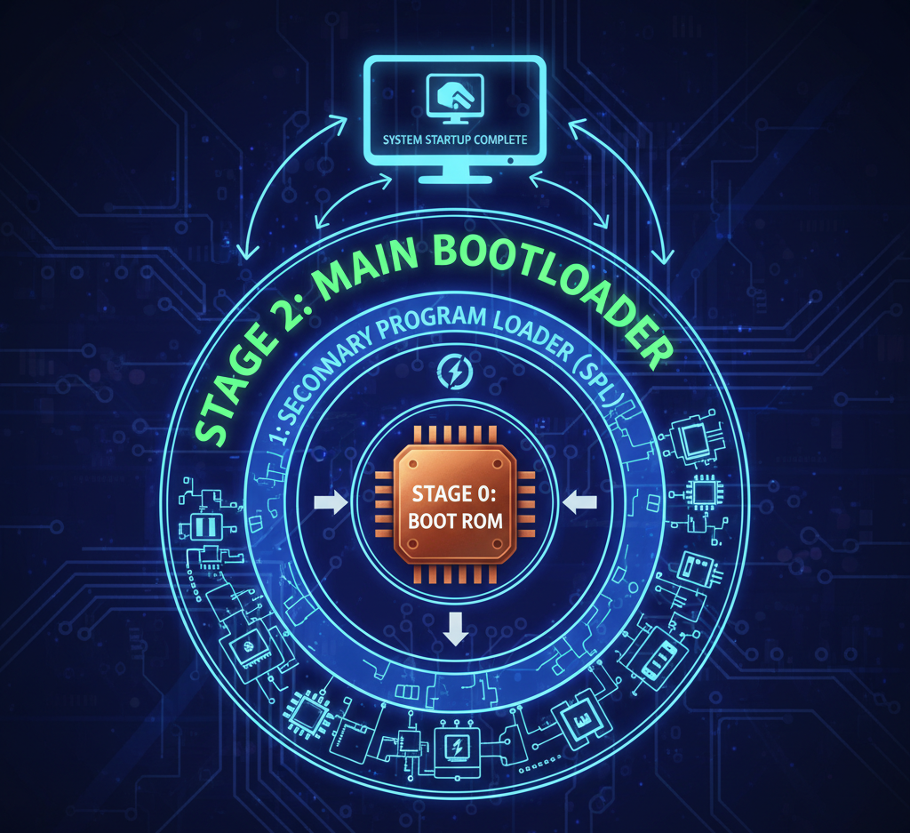 The boot process on a typical System-on-Chip (SoC) is a multi-stage climb, with each loader establishing a more capable environment for the next. This is a direct consequence of the hardware’s initial memory limitations.